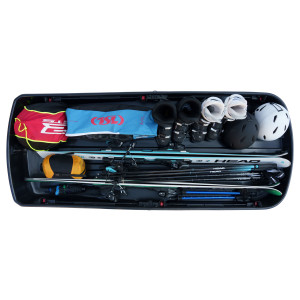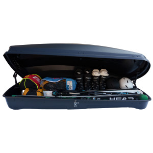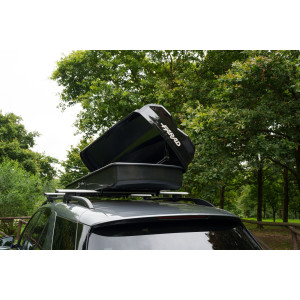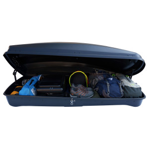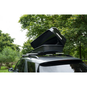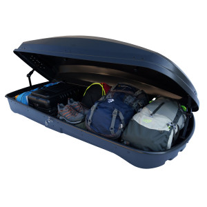 Die Farad Raya 480L Dachbox verfügt über eine beidseitige Öffnung, ideal zum einfachen Be- und Entladen auch sperriger Gegenstände.